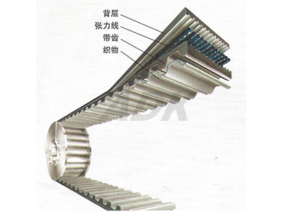 1.結構組成 頂膠,抗拉體,底膠和包布 2.截面型號:Y,Z,A,B,C,D,E 3.基本參數: 節寬bp,基準寬度bd,基準直徑dd,基準長度Ld(指按帶輪基準 直徑dd 計算的數值)等.